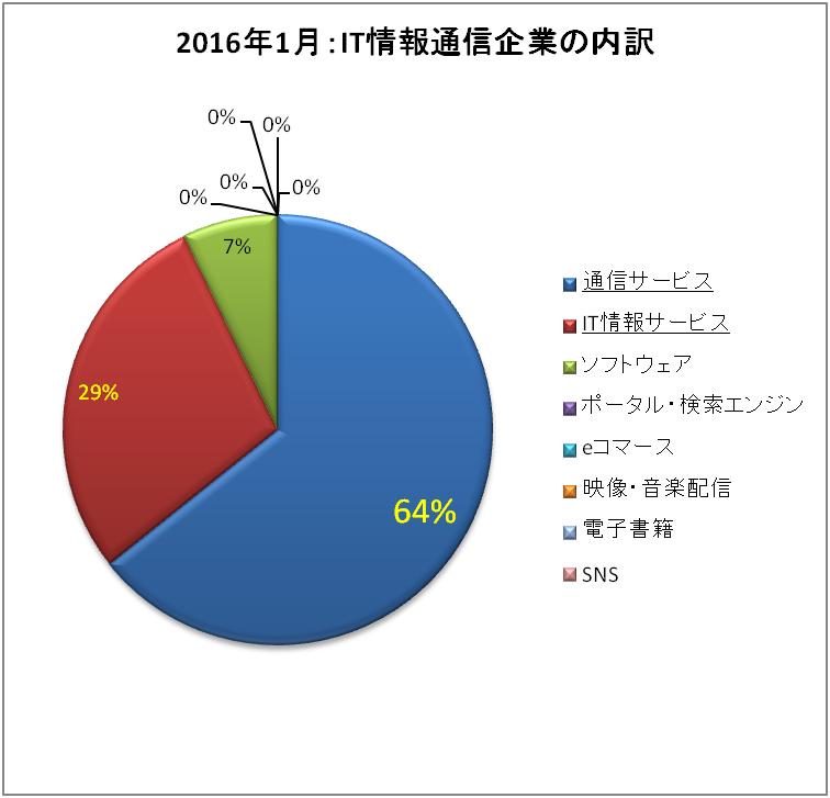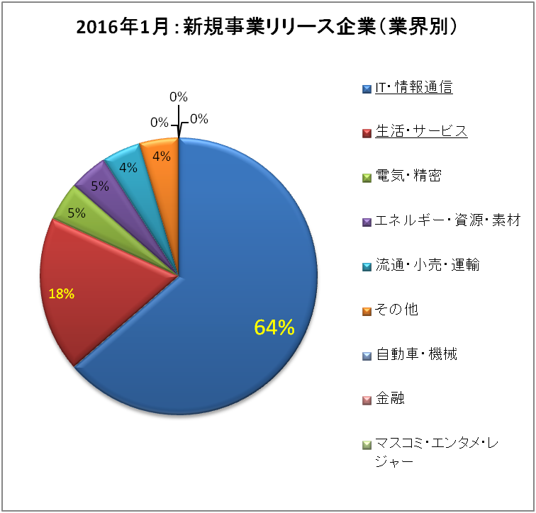 2016年1月、PR TIMESを中心に新規事業関連をリリースした企業を業界別に分けたものが以下の表になります。